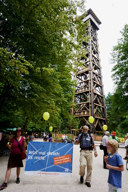 Buntes Protestleben rund um den ehrwürdigen Turm