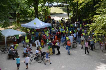 Luftballons und Teilnehmer der Exkursion treffen sich