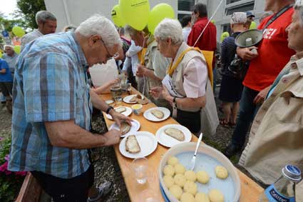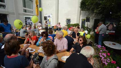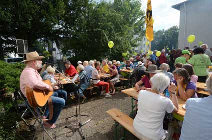 Entspannte Festatmosphäre vor Kirche und Gemeindehaus ...