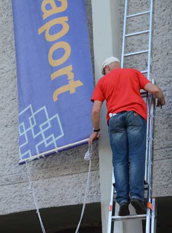 ...abendliche Abschluss der Protestaktion: Das Transparent ...