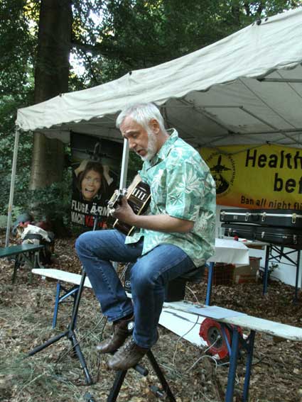 Bodo Kolbe, Blues-Musiker aus Mörfelden, spielte eine Auswahl von Liedern aus seinem reichhaltigen Repertoire. Hintergründige, politische, auch historische Lieder die eine erstaunliche Aktualität haben. Nicht fehlen durfte dabei „Senkrescht wie die Sparschel“ das in den 80er Jahren im Widerstand gegen die Startbahn West entstand. |