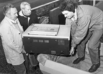 Beim Verschicken moderner Computer-Geräte für den Aufbau vom Umweltschutz-Gruppen in Thüringen 1990 in Walldorf |