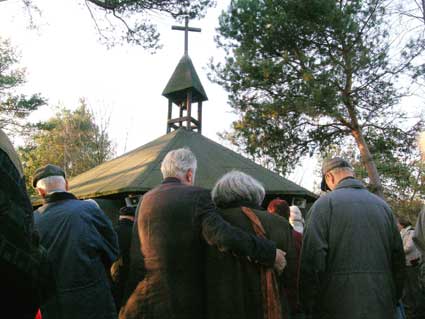 Fast schon Symbol: Käte und Walter Raiss vor ihrer Hüttenkirche |