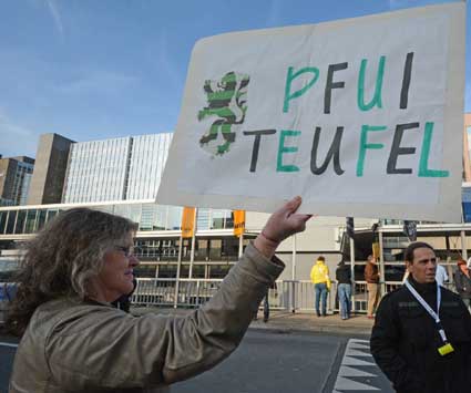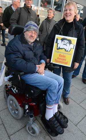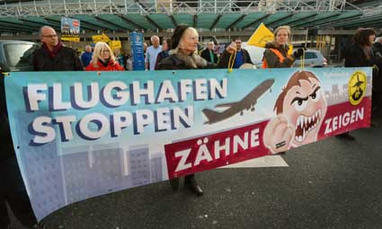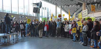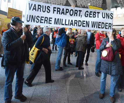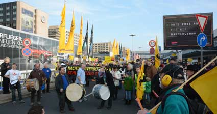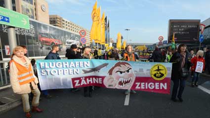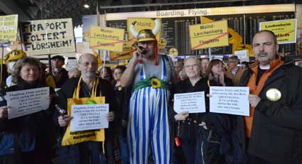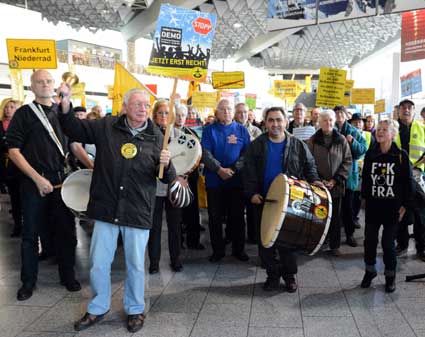 22. November 2014, Frankfurter Flughafen, Terminal 1 Zähne zeigen - Flughafen stoppen Montagsdemo diesmal samstags