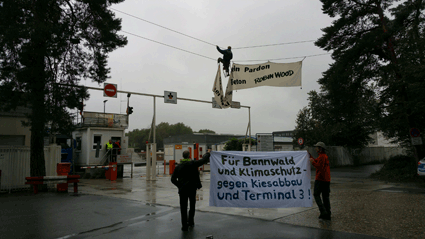Am Freitag, den 28. August führten AktivistInnen eine Aktion vor der Einfahrt des Sehring-Kieswerks durch. Weitere Informationen gibt es hier auf dem Robin-Wood-Blog: