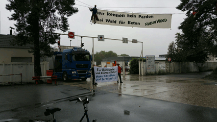 Wie auch im letzten Jahr organisierte Robin Wood mit Unterstützung des BBI ein Camp in dem Waldstück, das für die Zufahrt von Terminal 3 zur Autobahn gerodet werden soll. Im Moment gibt es noch kein Enteignungsverfahren gegen die Stadt Ttebur, der der Wald gehört. Im Oktober soll laut Fraport der erste Spatenstich für den Bau des Terminals geschehen.