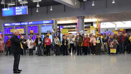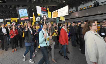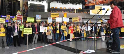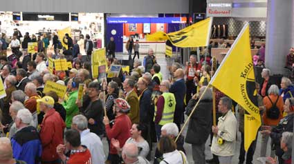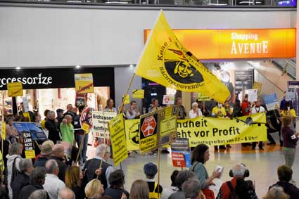 Montagabend: Der Demonstrationszug durchs Terminal 1 beginnt |