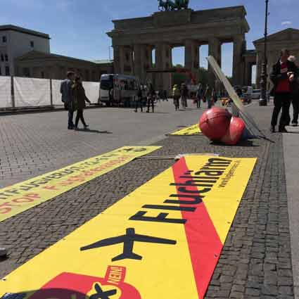 Nach einem Abstecher nach Kassel zum ersten Verhandlungstag vorm VGH zur Klage der Stadt Flörsheim ging's weiter nach Berlin, wo ein umfangreiches Programm inklusive Mahnwache vor dem Brandenburger Tor von den MitstreiterInnen bewältigt wurde.