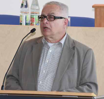 Thomas Jühe, Vorsitzender der Fluglärmkommission Frankfurt und Bürgermeister von Raunheim, sprach zum Thema “Fluglärmschutz” und der dazu praktizierten Politik der kleinen Schritte |