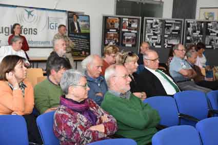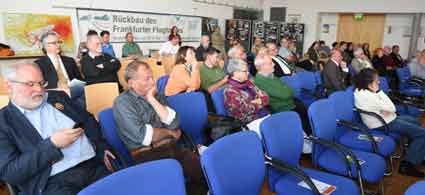 Unsere Fotos 11 bis 16 zeigen Szenen beim Blick ins Publikum, darunter viele, die sich seit Jahrzehnten gegen den Flughafenausbau engagieren. |