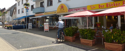 Als das Mobil um 12.30 Uhr anrückte, war der angepeilte Stellplatz mit den Auslageständern des örtlichen Buchhändlers belegt. Auch der Ausweichstellplatz auf dem angrenzenden Parkplatz war dummerweise mit Fahrzeugen besetzt, weil das Markierungsschild auf das Jahr 2014 ausgestellt war. Warum dem so war, wird das Geheimnis der Ordnungsbehörde bleiben. Schilda oder Schwejk?