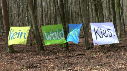 Als lukrativen Auftrag hat man die Belieferung der Terminal 3 - Baustelle im Auge. Der dorthin gelieferte Beton schadet gleich doppelt: In Langen gräbt er als Rohstoff den Wald ab und wenige Kilometer weiter dann als Flughafengebäude das Klima...