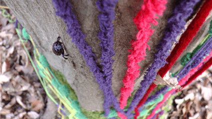 Am Tag fünf nach Beginn der Sehring-Rodung sollte mit einer Verfremdung des Absperrzauns die Aufmerksamkeit der Waldbesucherinnen auf die Ereignisse hinter dem Zaun gelenkt werden:- die neuerliche Abholzung von vier Hektar Bannwald für den Kiesabbau.