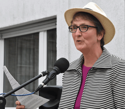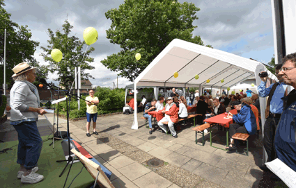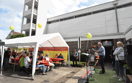 Für die Kirchengemeinde sprach Pfarrerin Silke Alves-Christe, die das amtliche Genehmigungsschreiben der Stadtverwaltung für das Fest vorlas...