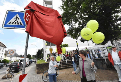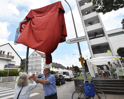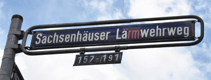 Unsere Fotos 18 bis 24 zeigen Szenen von der satirischen Enthüllung des Straßenschildes "Landwehrweg" und dessen vorübergehenden Wandel in "Lärmwehrweg".