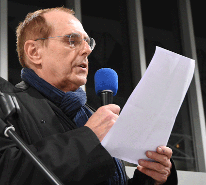 24: Bei der wies Erwin Stuffler (BBI) so nochmals auf die am Montag, 30. Januar 2017, 18 Uhr, anstehende 200. Montagsdemo mit Protestprogramm und Prominenz hin