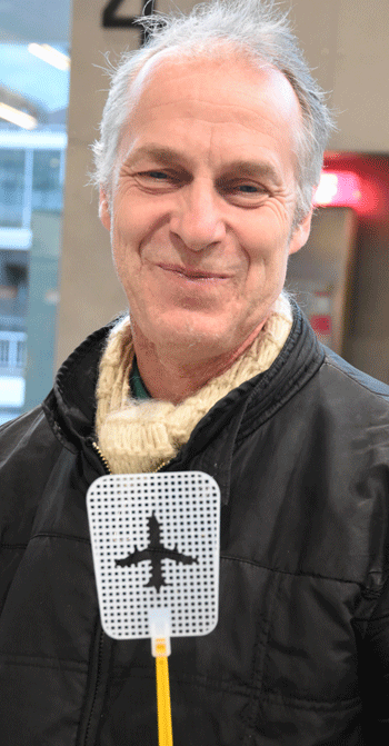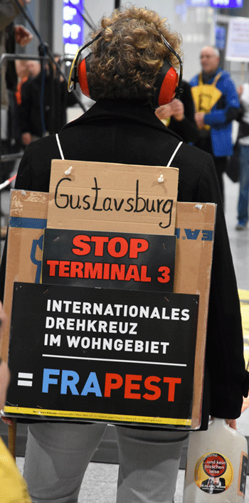 Dietrich Elsner (Bürgerinitiativen Mainz) führte den an die Kundgebung sich anschließenden traditionellen Protestumzug (Fotos bis 32) durchs Terminal des Frankfurter Flughafens an. |
