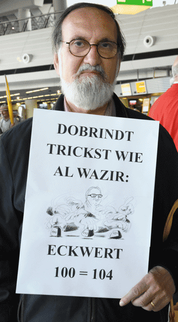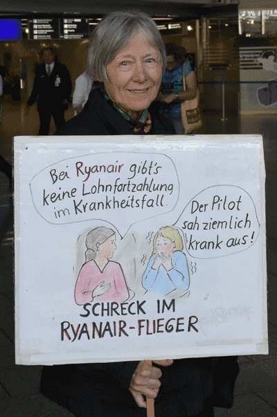 Unsere Bilder 13 bis 25 zeigen Szenen beim Protestumzug, der sich am 15. Mai 2017 an die Kundgebung im Terminal 1, Abflughalle B, traditionell anschloss. |