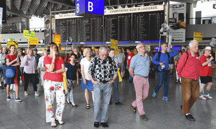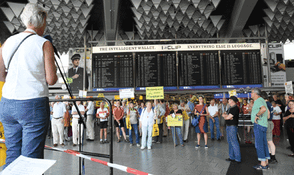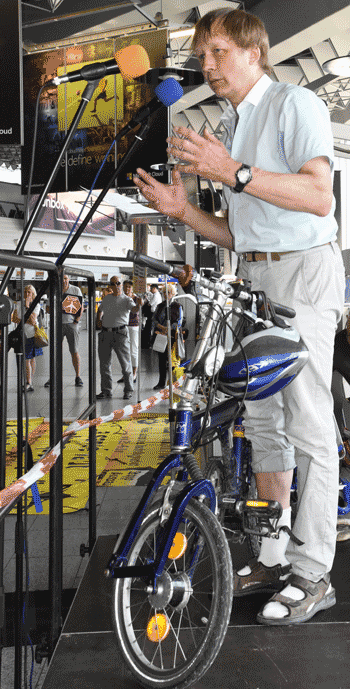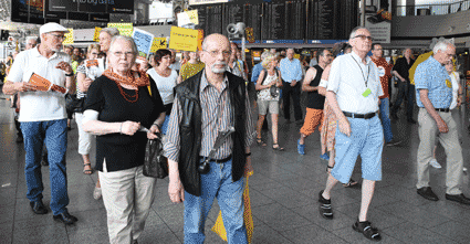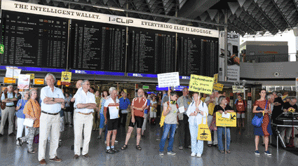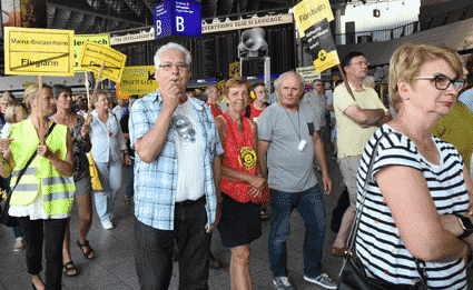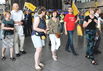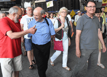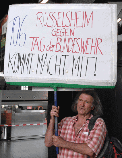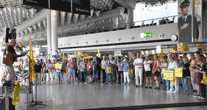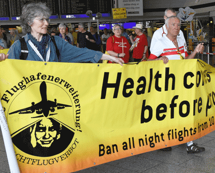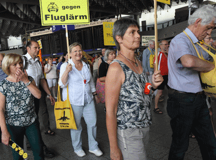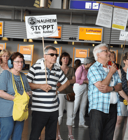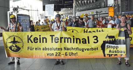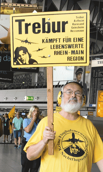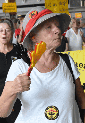 Bei der vom gegen Ausbau und Umweltbelastungen des Rhein-Main-Flughafens kämpfenden Bündnis der Bürgerinitiativen (BBI) organsierten 213. Montagsdemo standen Infos des Verkehrsclubs Deutschland (VCD) im Mittelpunkt. Dazu war am 29. Mai 2017 Klaus Buggisch (VCD Rheinland-Pfalz) zu hören zu Absurditäten in der Verkehrspolitik wie über eine unnötige Rheinbrücke, aber auch um die ernsthaften Bemühungen eines Dorfs im westafrikanischen Bourkina Fasso um Lärmschutz. Moderiert wurde die Montagsdemo von Birgit von Stern (BI Hochheim – Flörsheim). Einen kurzen Überblick über die BI-Aktivitäten beim zurückliegenden Evangelischen Kirchentag in Berlin lieferte Bettina Appel (Mainz). Für musikalische Umrahmung sorgte Steve Collins (Frankfurt).
