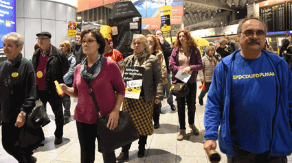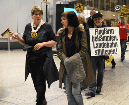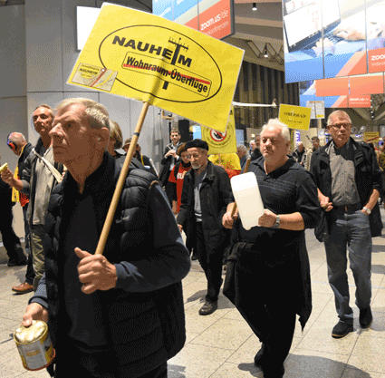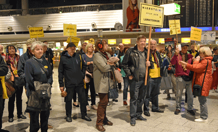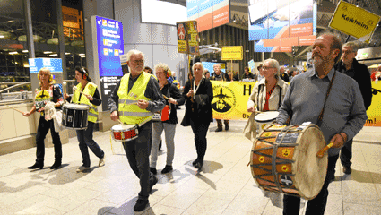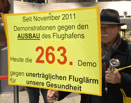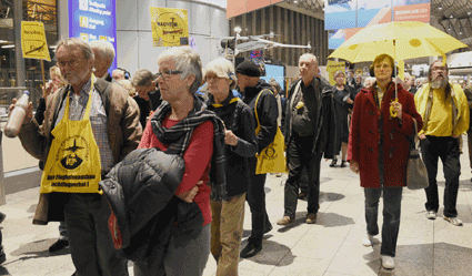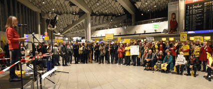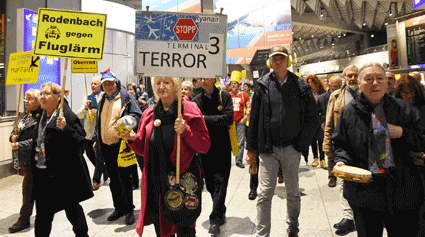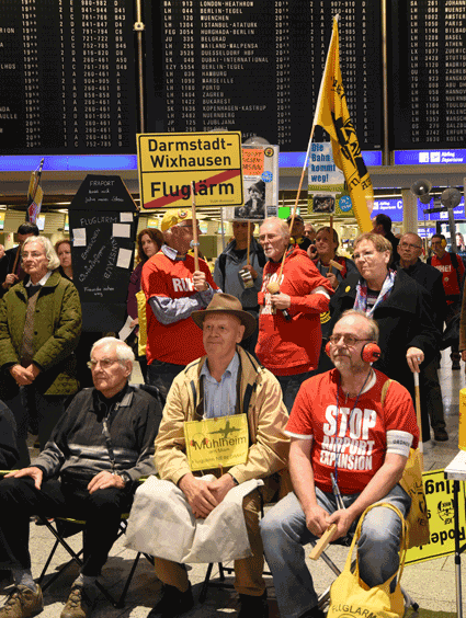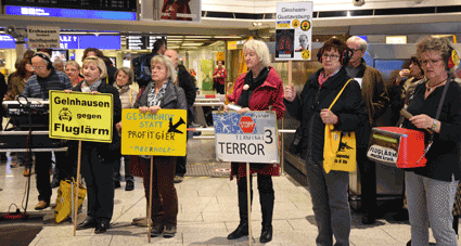 Sigrid Frees (Fotos 2 und 3) stellte am 5. September 2018 bei der 263. Montagsdemo des Bündnisses der Bürgerinitiativen (BBI) das Netzwerk "Stay Grounded" vor. Die Protestaktion fand im Terminal 1 des Rhein-Main-Flughafens mit einer Kundgebung und einem Demonstrationszug statt. Unsere Bilder zeigen Szenen bei der Montagsdemonstration.