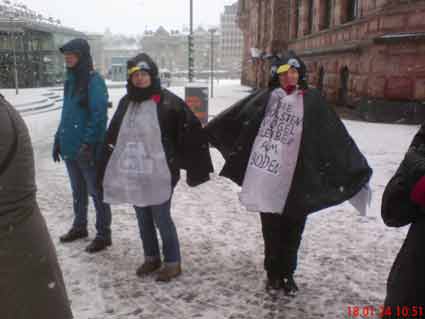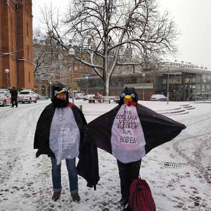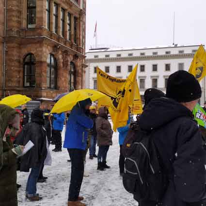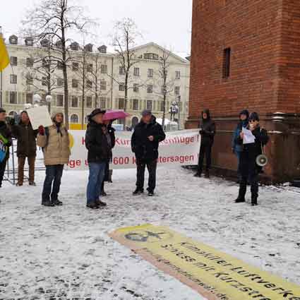 Protestkundgebung in Wiesbaden Flughafenausbaugegner*innen und Klima*aktivistinnen protestieren am Landtag gegen Koalitionsvereinbarung CDU-SPD