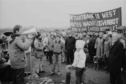 Henner Gonnermann bei einer der ersten großen Demonstrationen, 1979 an der Okrifteler Straße – zwischen Kelsterbach und Walldorf -, gegen die Erweiterung des Airports |