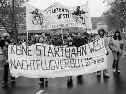 Henner Gonnermann in der Spitzengruppe einer Demonstration gegen die Startbahn West, 1980 in Wiesbaden |