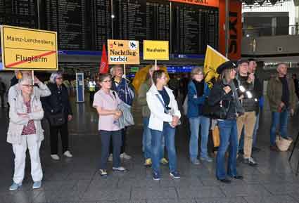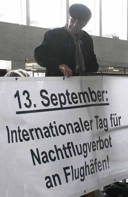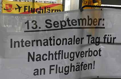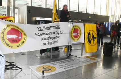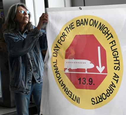 Nicht nur Nachtflugbeschränkungen, sondern ein richtiges Nachtflugverbot von 22 bis 6 Uhr - orientiert an der gesetzlichen Definition von Nacht – wurde am 13. September 2024 bei der BBI-Protestkundgebung im Zuge des "Internationalen Tags für Nachtflugverbot an Flughäfen" gefordert. Dies sei auch rund um den Rhein-Main-Airport dringlich, hieß es bei der BBI-Aktion im Terminal 1 des Frankfurter Flughafens in Redebeiträgen und auf Plakaten. Anlässlich des weltweiten Aktionstages sprachen in Frankfurt unter anderem Prof. Dr. Thomas Münzel,