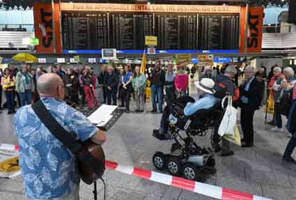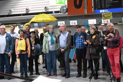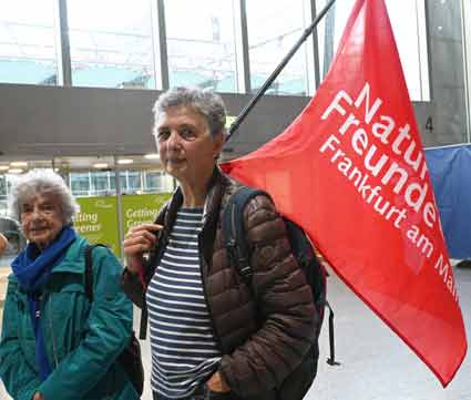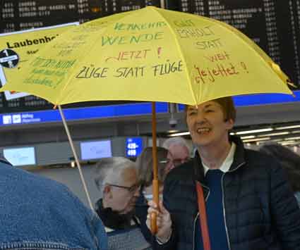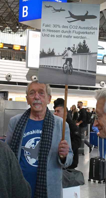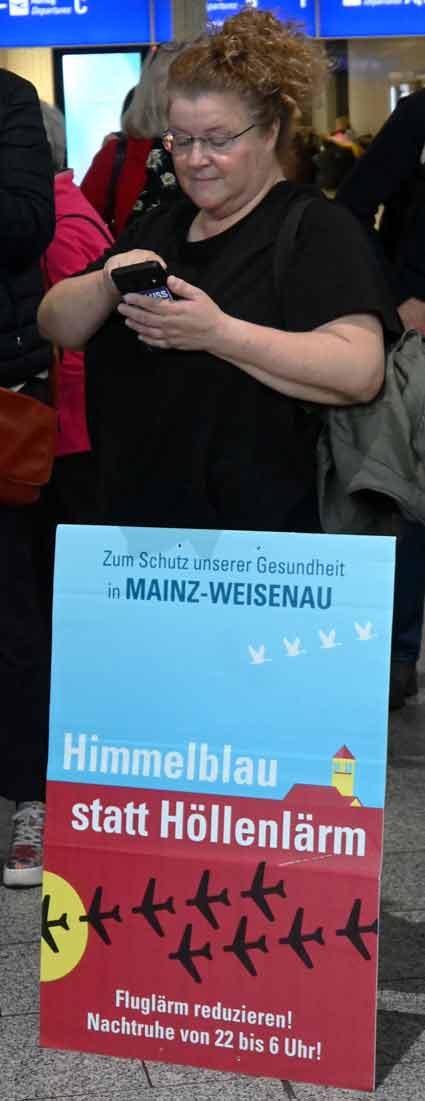 Die nunmehr 311. Montagsdemo des gegen Ausbau und Umweltbelastungen des Frankfurter Flughafens kämpfenden Bündnisses der Bürgerinitiativen (BBI) fand am 21. Oktober nach der durch Corona-bedingten Pause im Terminal 1 statt, wo seit 2011 solche Protestaktionen in der Abflughalle B stattfinden. Aktive aus vielen Kommunen im Rhein-Main-Ballungsraum nahmen unter dem Motto "13 Jahre Landebahn Nordwest" teil, wozu Knut Dörfel (Bild 4) willkommen hieß und zur Fortsetzung des Protestes aufrief. Kritisch nahm fürs BBI Ursula Pirkl (Bild 5), Bütttelborn, unter anderem das Flachstattverfahren und das Verfahren dazu unter die Lupe und verwies auf alternative Konzepte dazu. Auf die Vielzahl der Umweltbelastungen ging Karl-Heinz Peil (Bild 6), BUND-Landesverband, ein. Musikbeiträge lieferte der Frankfurter Liedermacher Steve Collins (Bild 8). Unsere Bilder zeigen Szenen von der ersten Montagsdemo nach der Corona-Pause, womit unterstrichen werden sollte, dass der Protest auch unter veränderten Rahmenbedingungen weiter geht.