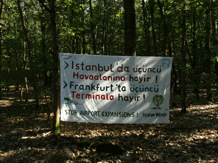 Internationale Solidarität gleich am Eingang zum Sommercamp: Nein zum dritten Flughafen in Istanbul, nein zum dritten Terminal in Frankfurt
