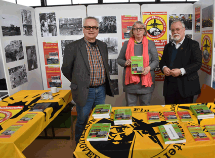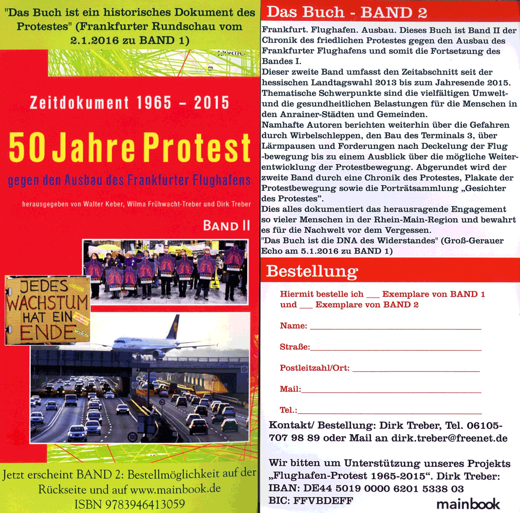 In Stockstadt am Rhein warben bei der “Ried-Buchmesse 2016” am 12./13. März in der Altrheinhalle Wilma Frühwacht-Treber, Dirk Treber und Walter Keber für das Buch “50 Jahre Protest gegen den Ausbau des Frankfurter Flughafens” sowie mit einer kleinen Foto-Ausstellung für die Protestbewegung gegen die Umweltbelastungen des Rhein-Main-Flughafens und dessen Erweiterung. Außerdem präsentierten sie im Rahmen der Buchmesse einen Beamer-Vortrag. Darüber hinaus stellten die drei Herausgeber des ersten Bandes der Protest-Chronologie erstmals auch den Flyer für Band II vor. Der wird zurzeit produziert und soll im April 2016 fertig sein.