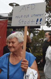 Auch viele Gegner/innen des Frankfurter Flughafenausbaues waren dabei und auch die schwarz-gelbe Fahne der Protestbewegung war zu sehen – so am 04. September 2018) vor dem Bürgerhaus Mörfelden bei der Protestaktion gegen Rechts unter dem Motto "Mörfelden-Walldorf – Stadt der Vielfalt" und "Unsere Stadt ist bunt und nicht braun". Anlass zu der Demonstration und Kundgebung war eine AFD-Veranstaltung im Bürgerhaus.