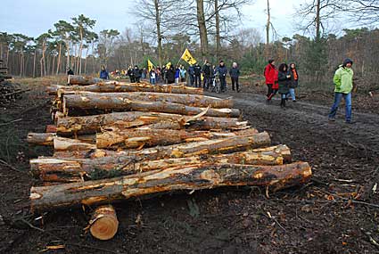 neue Piste schon abgeholzten Baumstämmen vorbei zur Baustelle zogen.