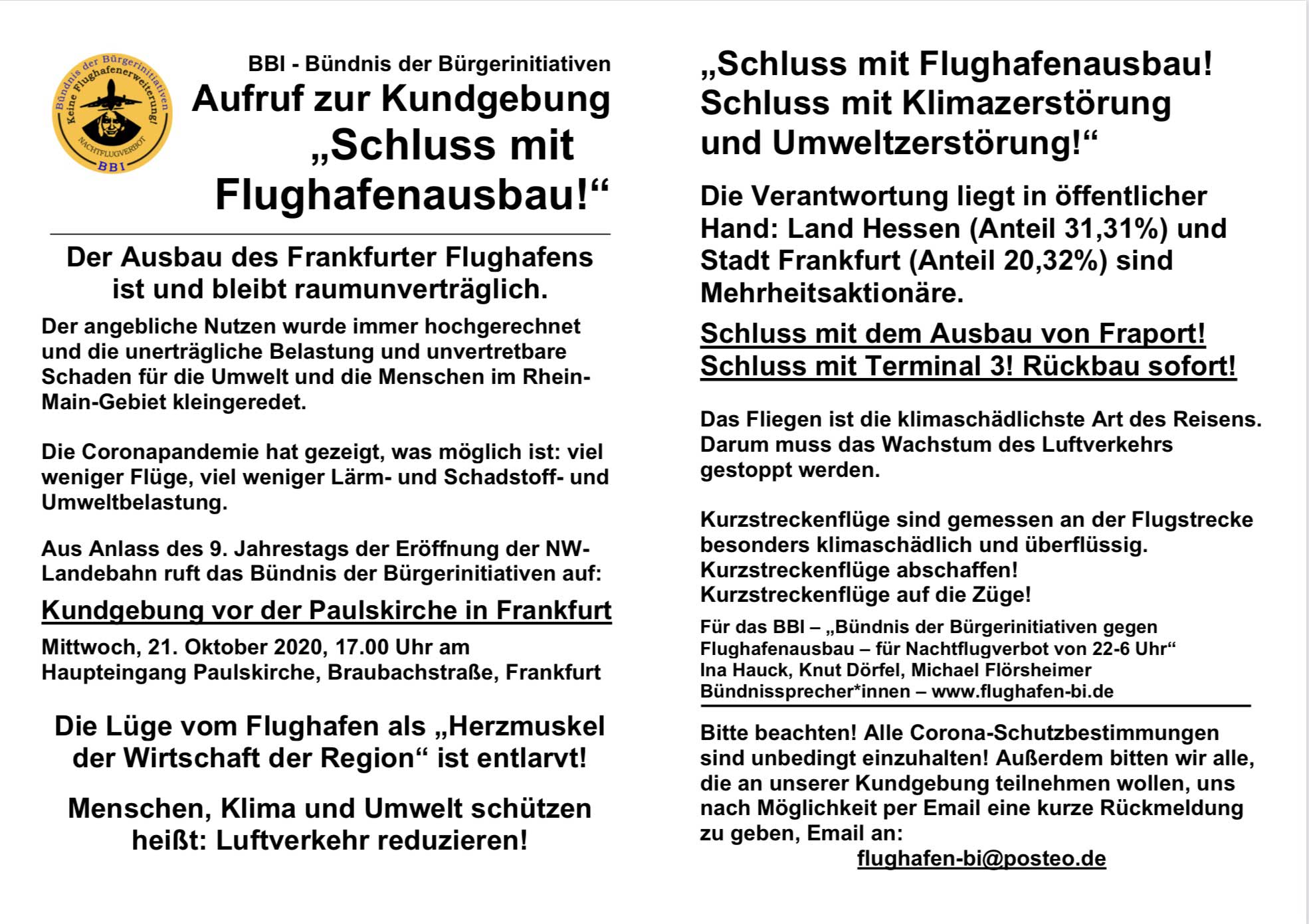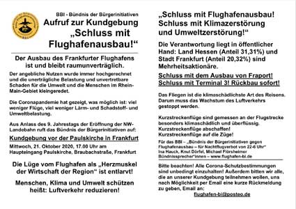 21.10.2020, 17.00 Uhr wird das Bündnis der Bürgerinitiativen