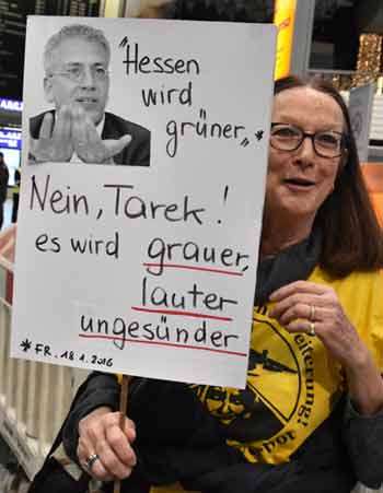 begleiten Gegner*innen des Frankfurter Flughafenausbaus, was im