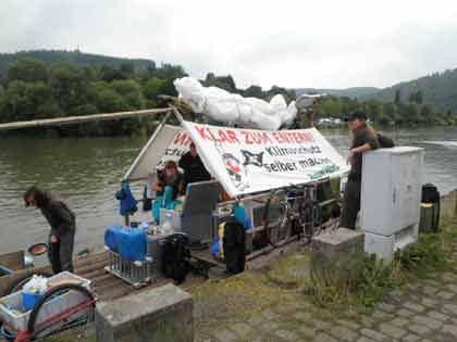 Die ROBIN WOOD Floßtour 2010 steht unter dem Motto : Klar zum Entern! Klimaschutz selber machen und besucht vom 9. bis zum 16.August die Rhein-Main-Region. Hier konzentrieren sich zahlreiche Industrieanlagen, die mit ihrem C0² -Ausstoß erheblich zur Beschleunigung des Klimawandels beitragen: das Atomkraftwerk Biblis, das Kohlekraftwerk Mainz/Wiesbaden, der Frankfurter Flughafen, der Industriepark Höchst, zahlreiche Straßen- und Verkehrsprojekte sowie das Kohlekraftwerk Staudinger.