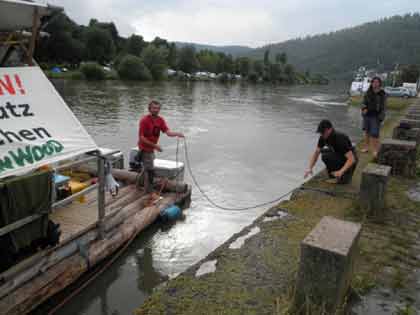 Das Floß Robina Wood ist von 9. bis 12. August in Mainz im Winterhafen am Fort Malakoff : Dort gibt es einen Infostand, Essen und Trinken, Musik und Informationen zum Kohlekraftwerk Mainz/Wiesbaden, zur aktuellen Anti-Atom-Kampagne und zum Flughafenausbau in Frankfurt.