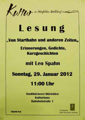 Leo Spahn, langjähriger Startbahn- und Flughafenausbaugegner sowie Mitbegünder der WIK Kelsterbach lud zur Lesung seiner Texte.