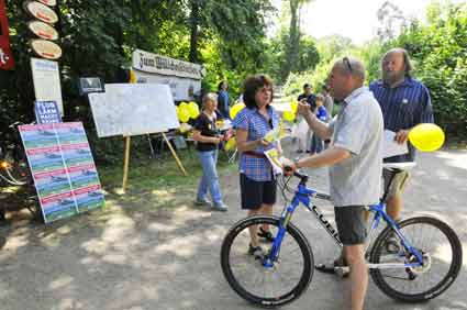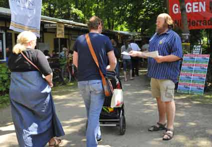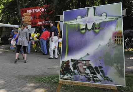 Auch am Pfingstsonntag informierten beim Frankfurter Wäldchestag Mitglieder der Frankfurter Bürgerinitiative "Eintracht gegen Fluglärm" mit einem Infostand und Flugblätter. Die Aktion der Flughafen-Ausbaugegner wird am Pfingstmontag und am Dienstag als tradtionellem Wäldchestag jeweils von 13 bis 19 Uhr fortgesetzt.