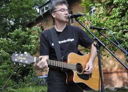 Der Walldorfer Liedermacher Harald Pons mit seinem Song: Beim Start kann ich dem Piloten in den Augen sehen - so niedrig!